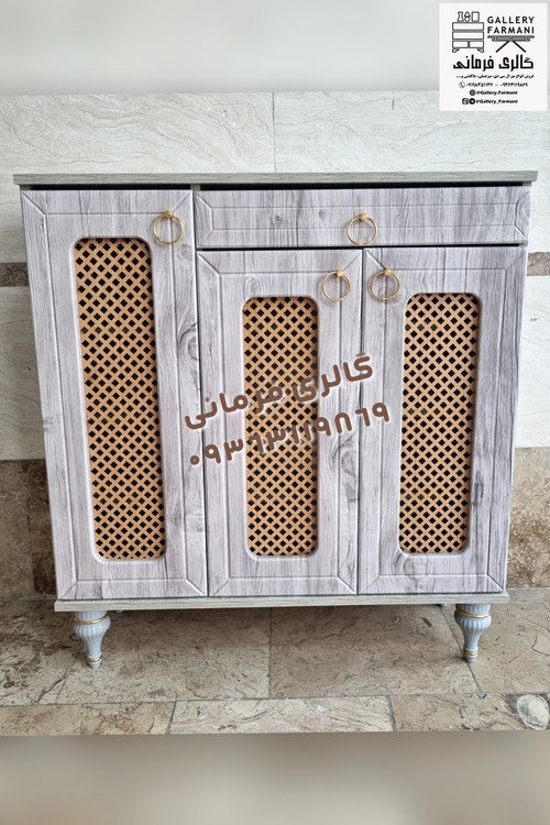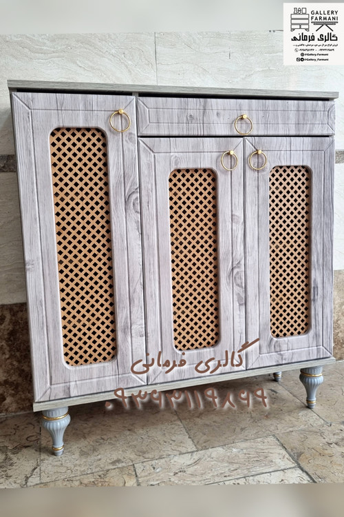 جاکفشی حصیری سه درب کشودار با دسته فلزی و پایه گنبدی