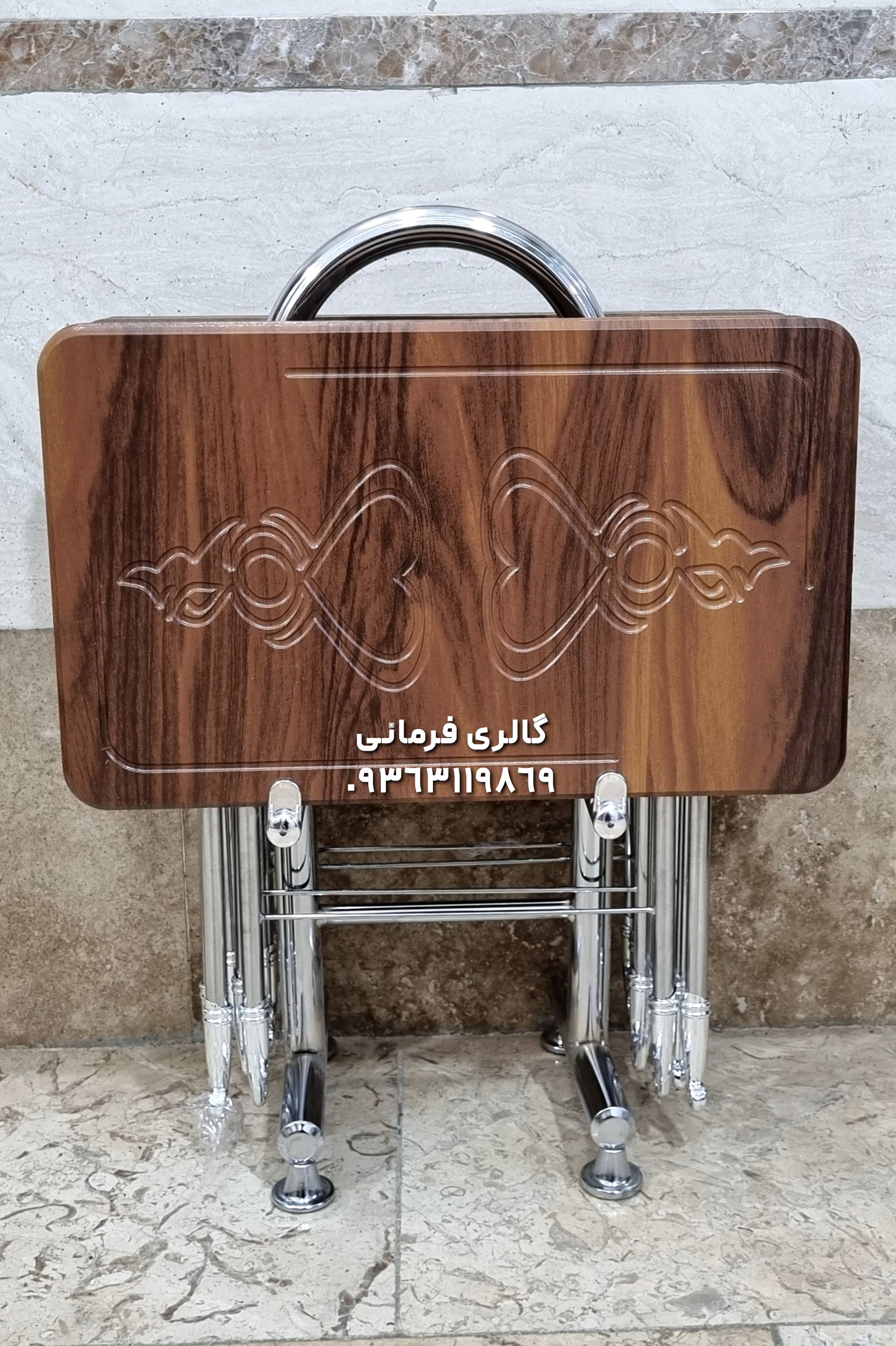 میزعسلی های تاشو شامل چهار عدد میزعسلی و یک استند نگهدارنده مناسب پذیرایی در منازل و فضاهای کوچک