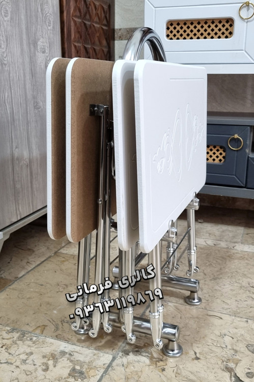 میزعسلی های تاشو شامل چهار عدد میزعسلی و یک استند نگهدارنده مناسب پذیرایی در منازل و فضاهای کوچک
