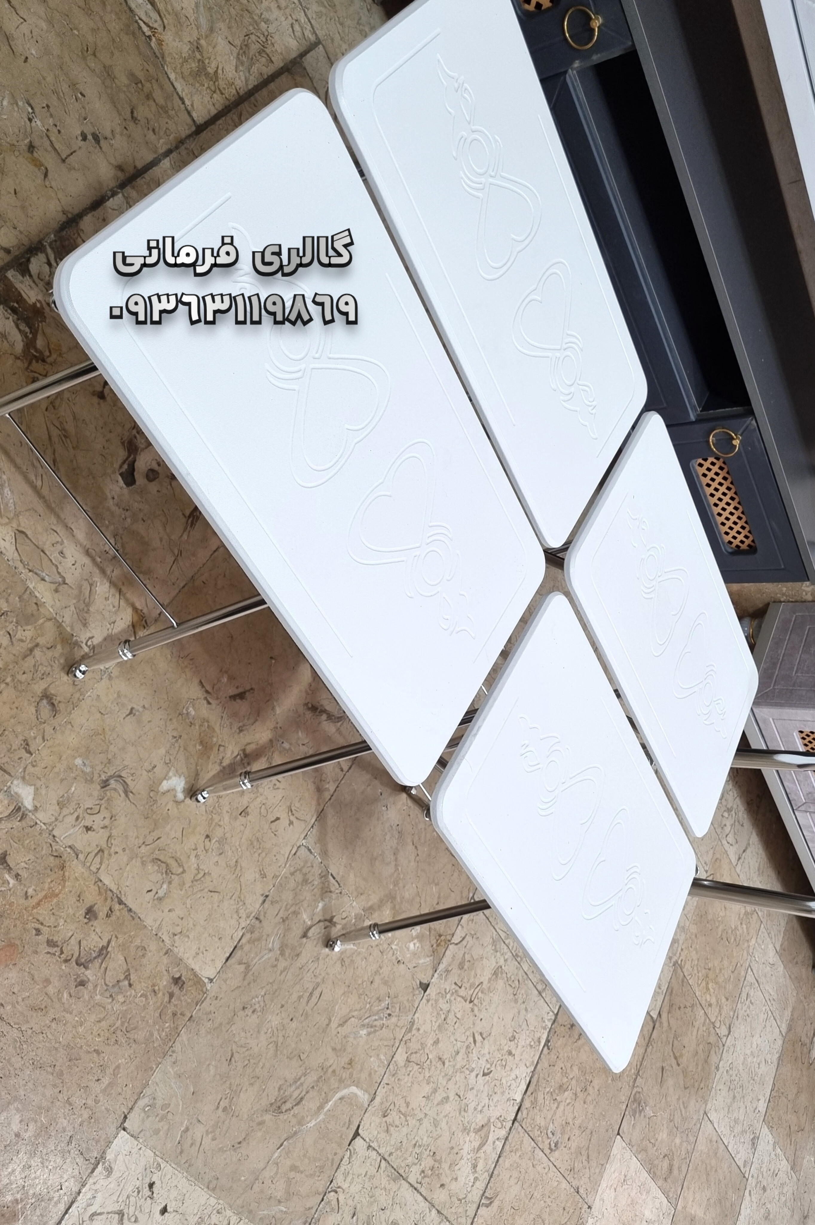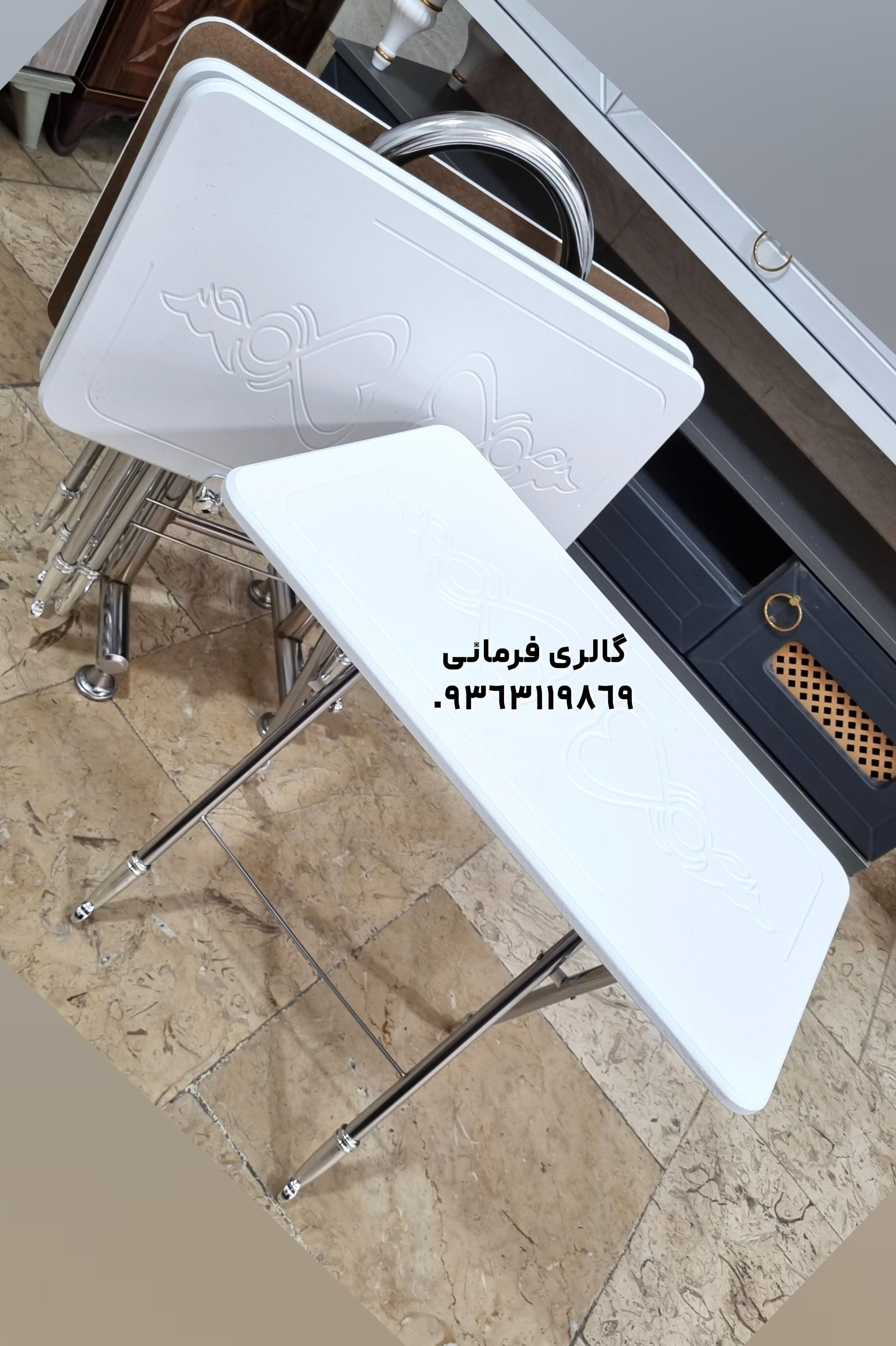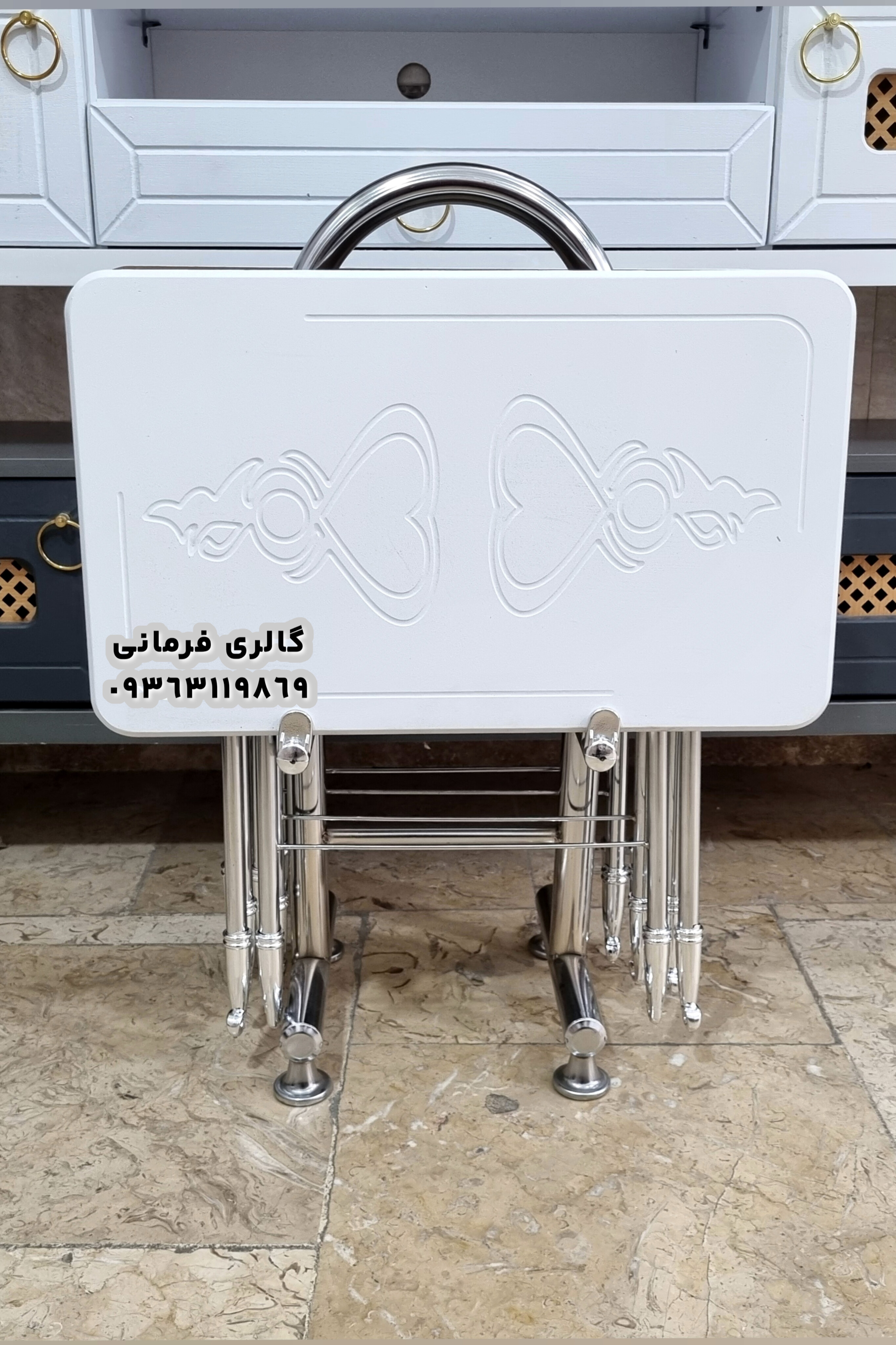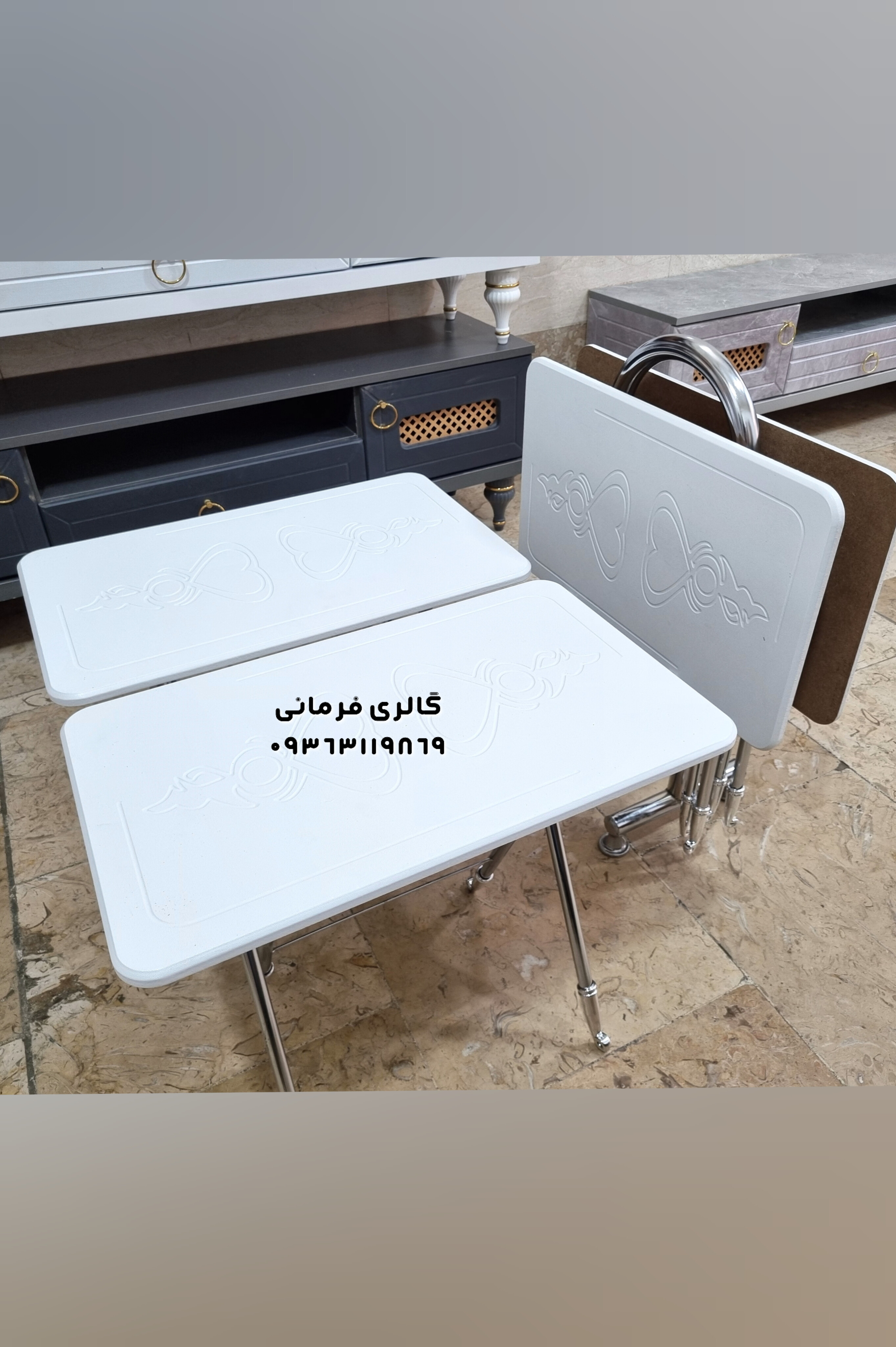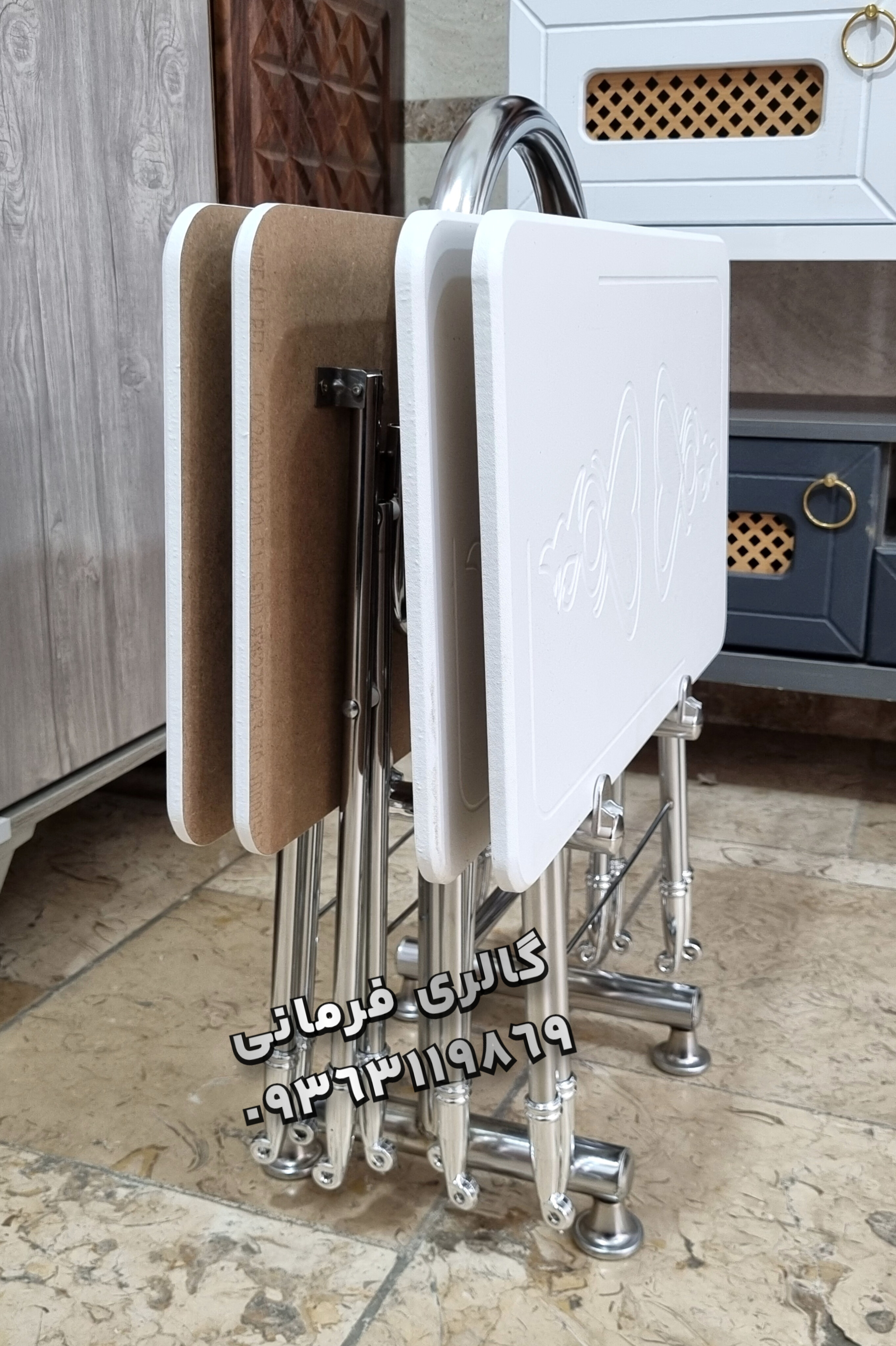 میزعسلی های تاشو شامل چهار عدد میزعسلی و یک استند نگهدارنده مناسب پذیرایی در منازل و فضاهای کوچک