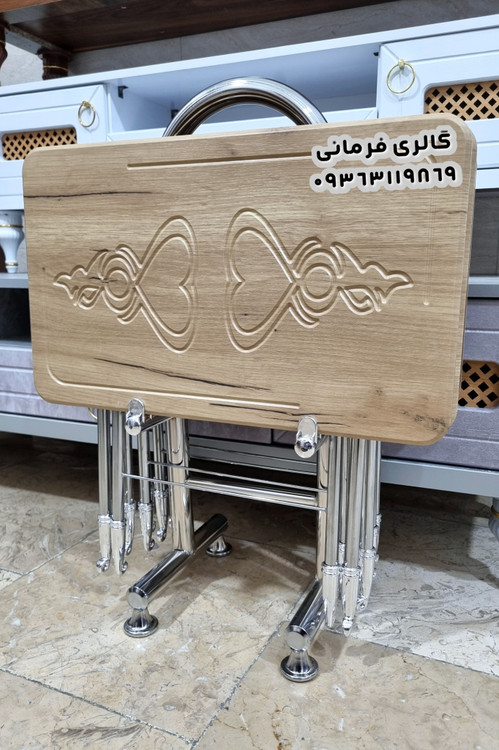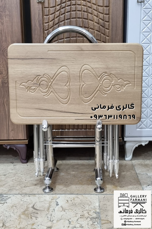 میزعسلی های تاشو شامل چهار عدد میزعسلی و یک استند نگهدارنده مناسب پذیرایی در منازل و فضاهای کوچک