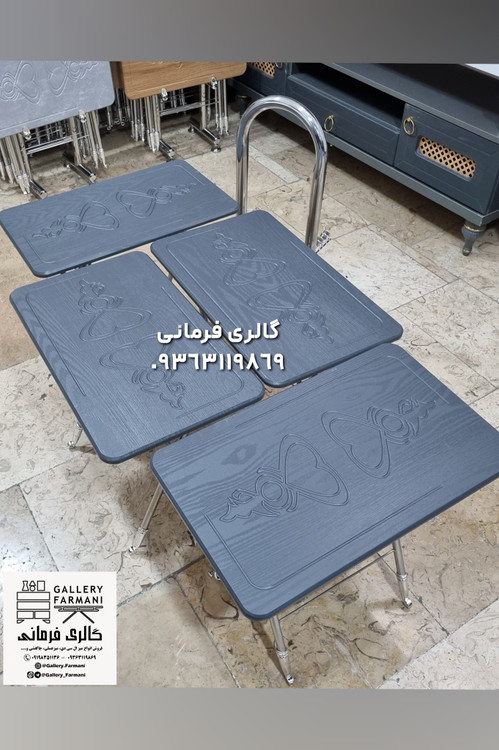 میزعسلی های تاشو شامل چهار عدد میزعسلی و یک استند نگهدارنده مناسب پذیرایی در منازل و فضاهای کوچک