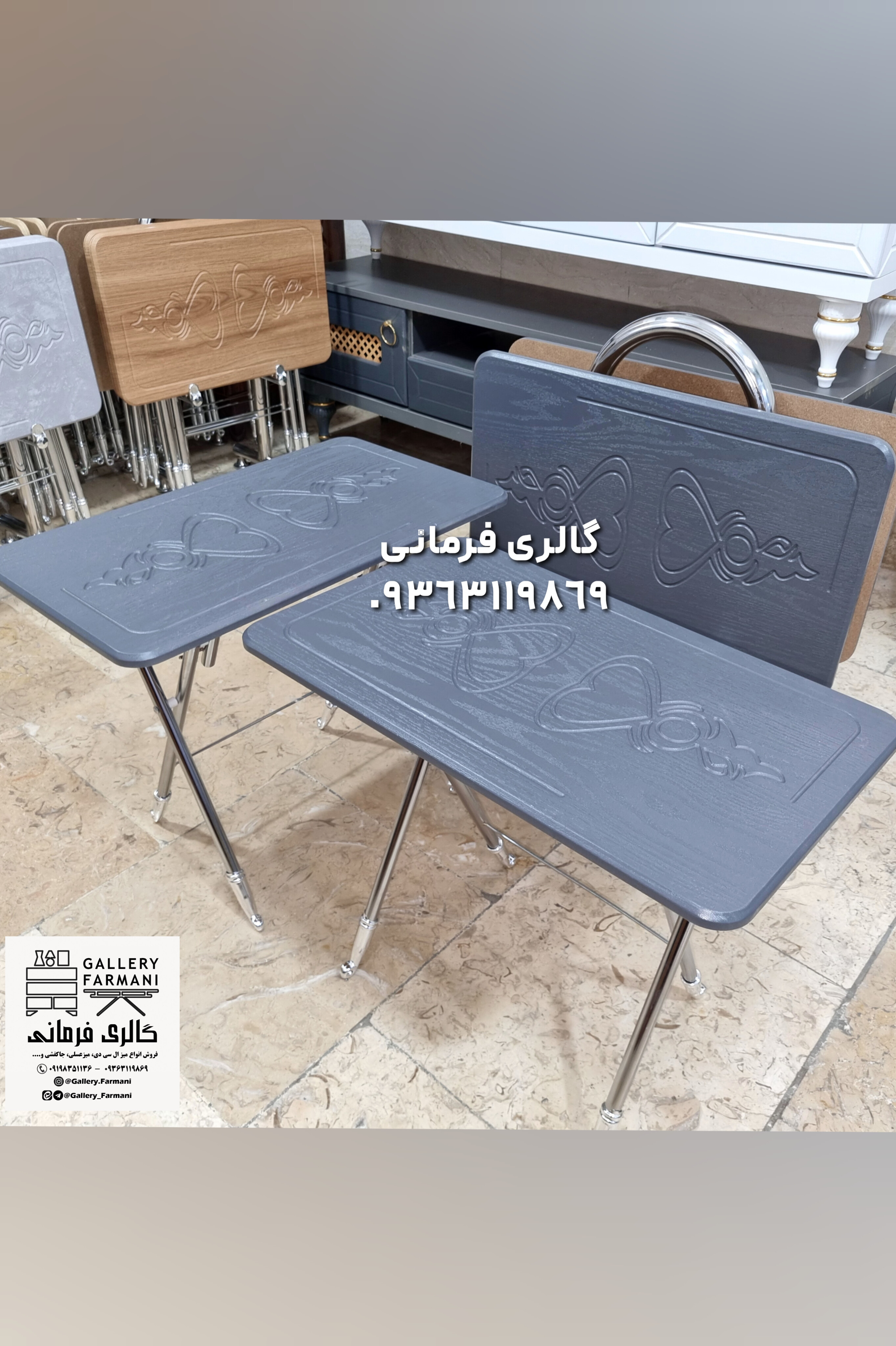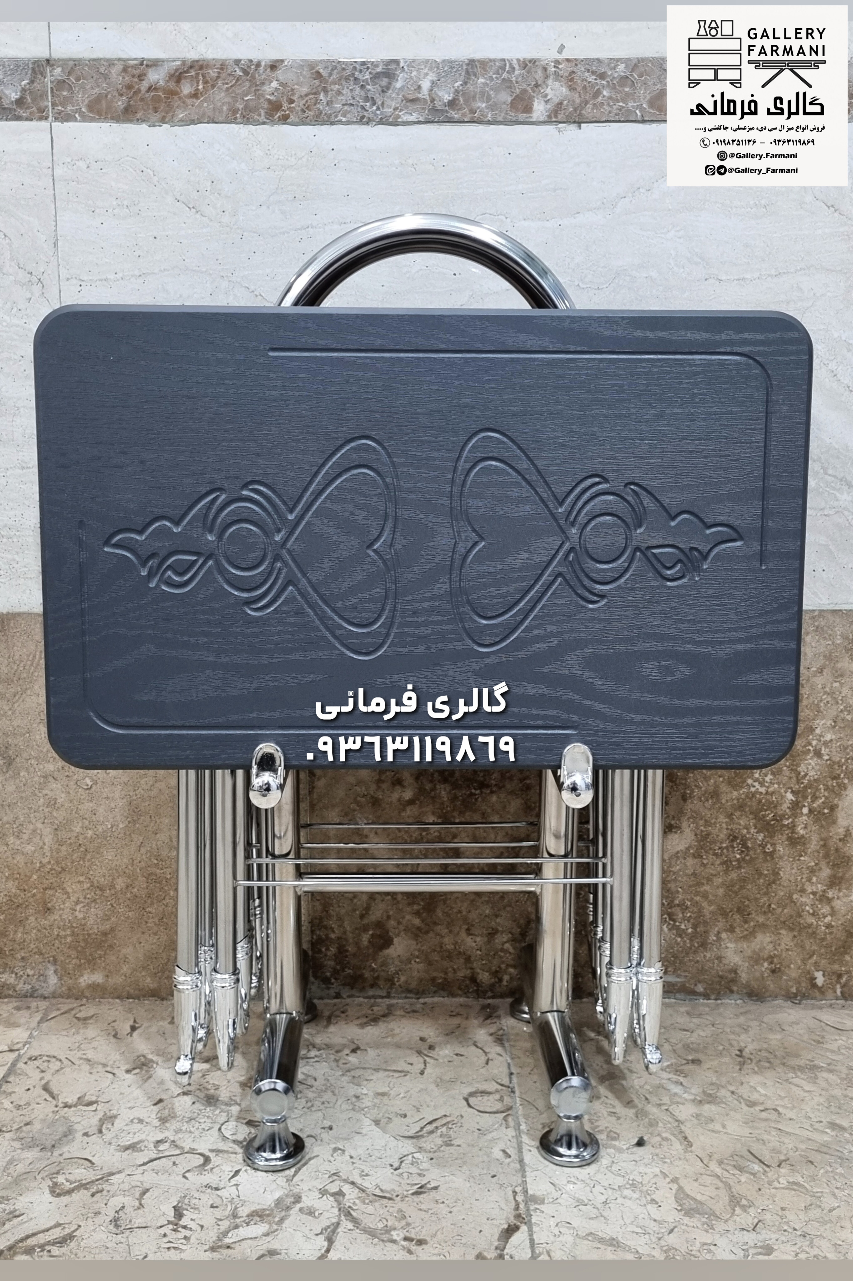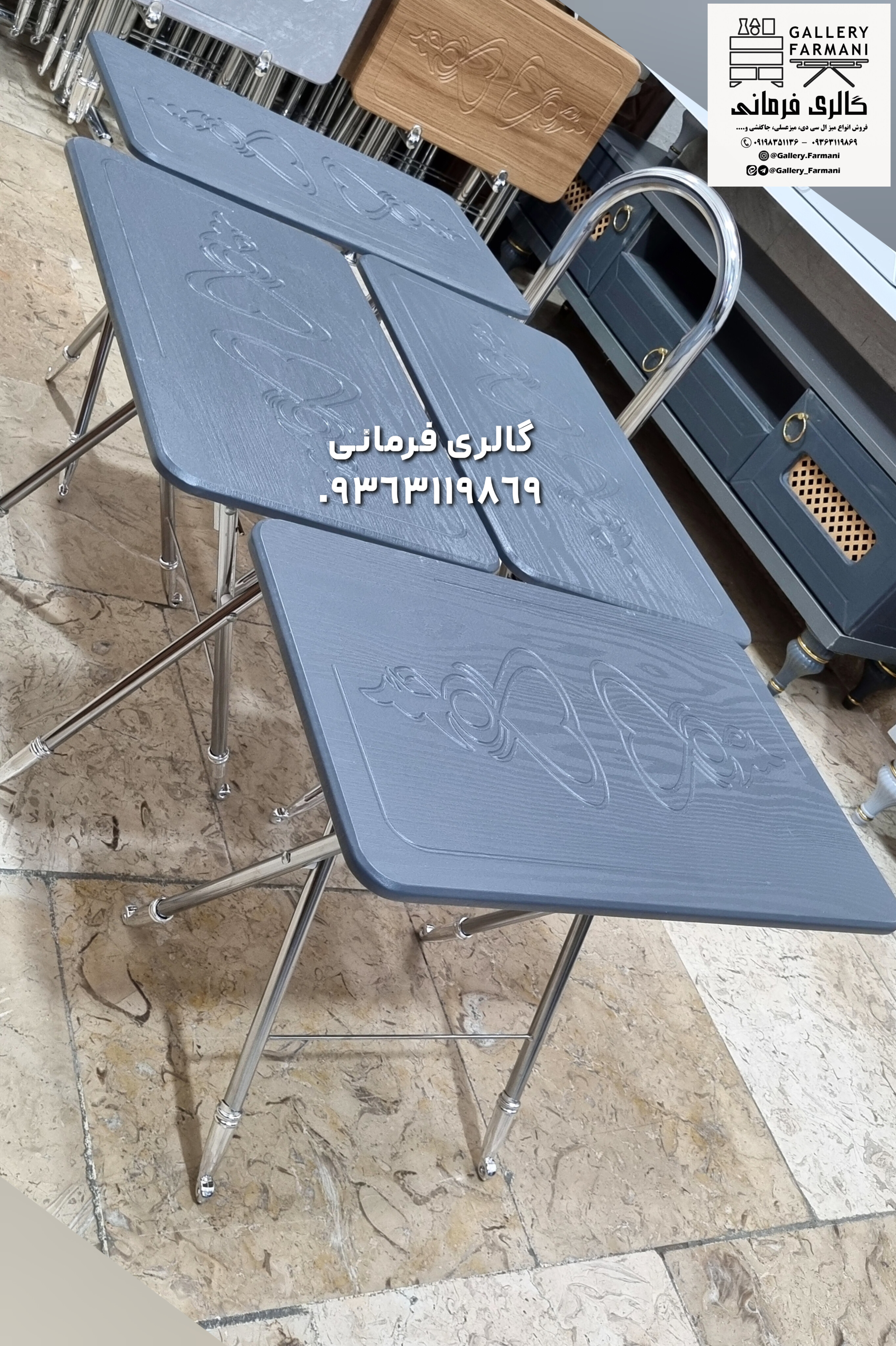 میزعسلی های تاشو شامل چهار عدد میزعسلی و یک استند نگهدارنده مناسب پذیرایی در منازل و فضاهای کوچک