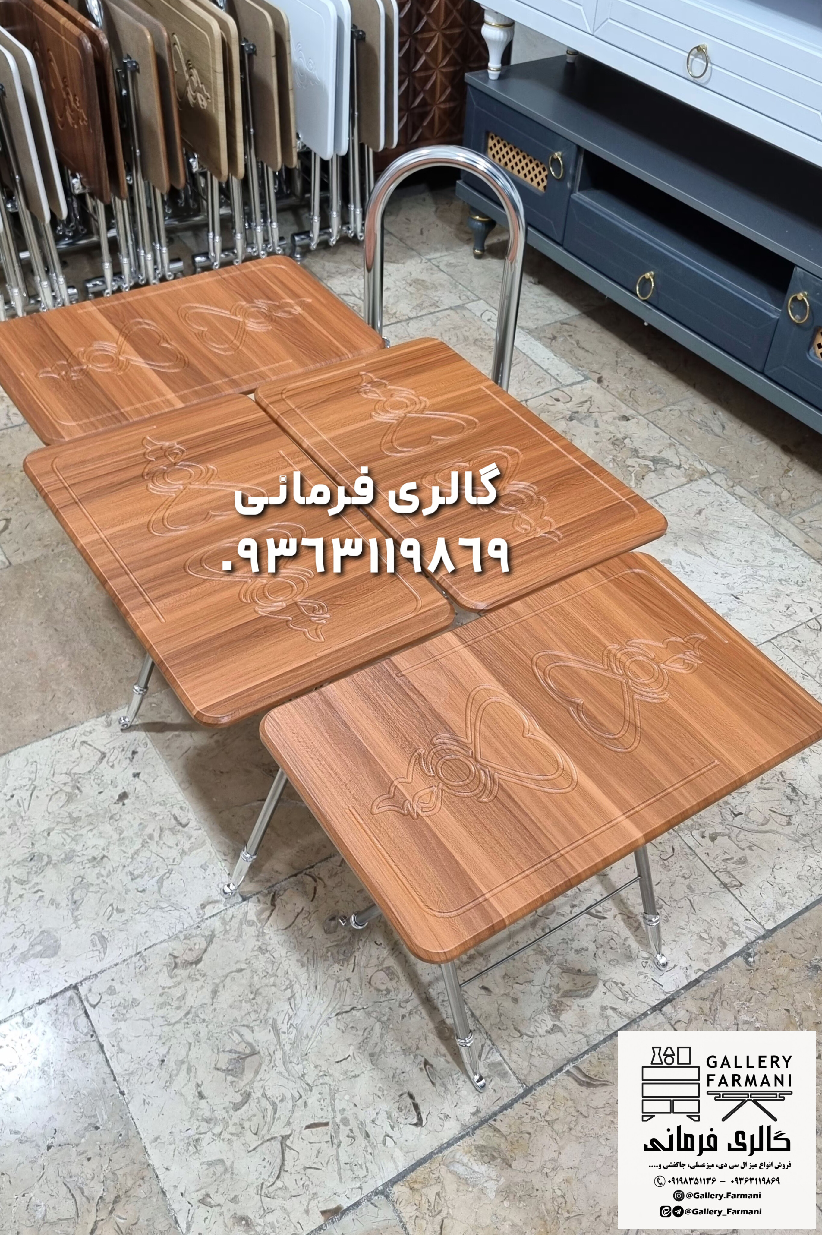 میزعسلی های تاشو شامل چهار عدد میزعسلی و یک استند نگهدارنده مناسب پذیرایی در منازل و فضاهای کوچک
