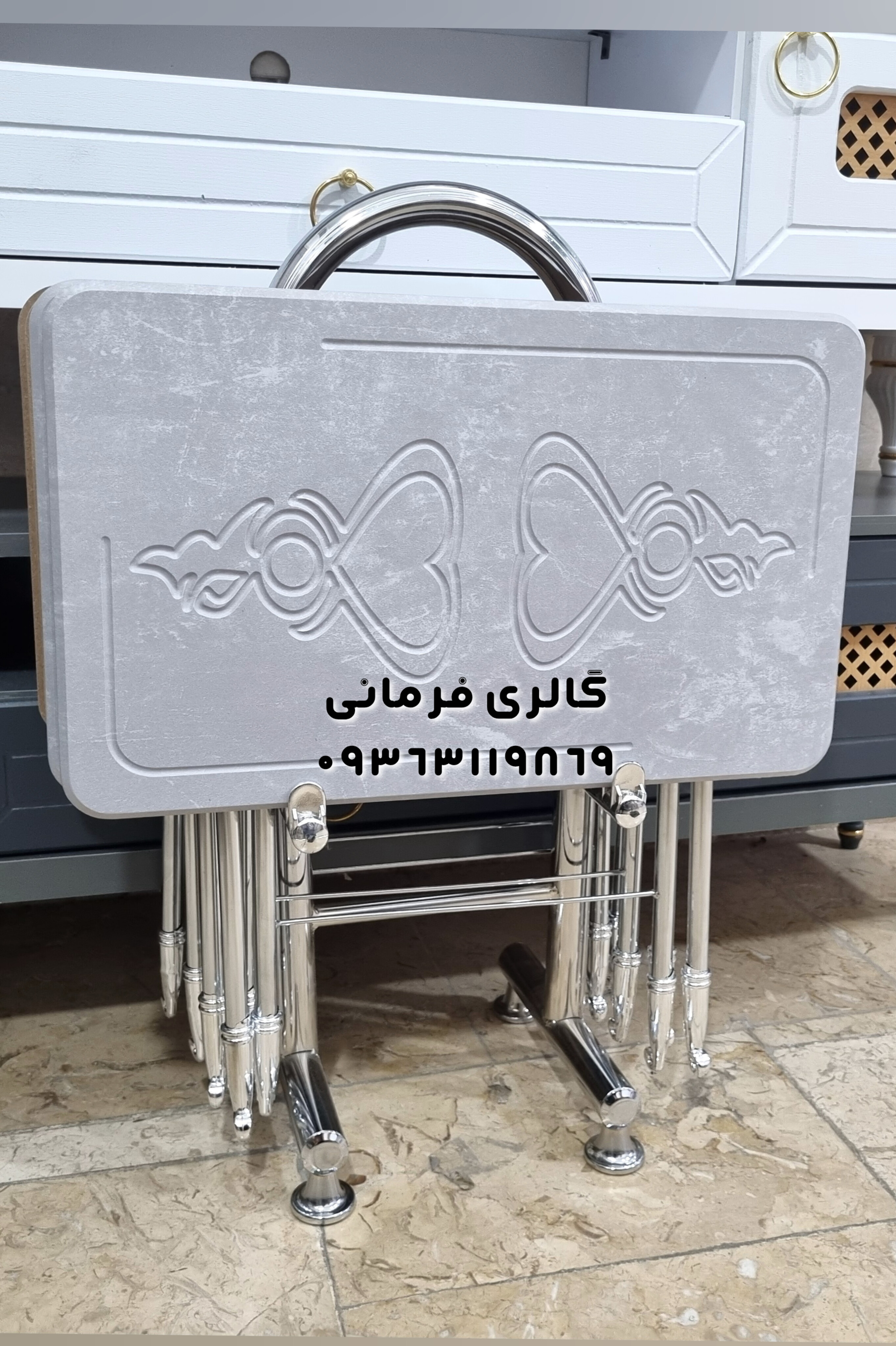 میزعسلی 4 عددی تاشو کمجا پایه فلزی و استند نگهدارنده